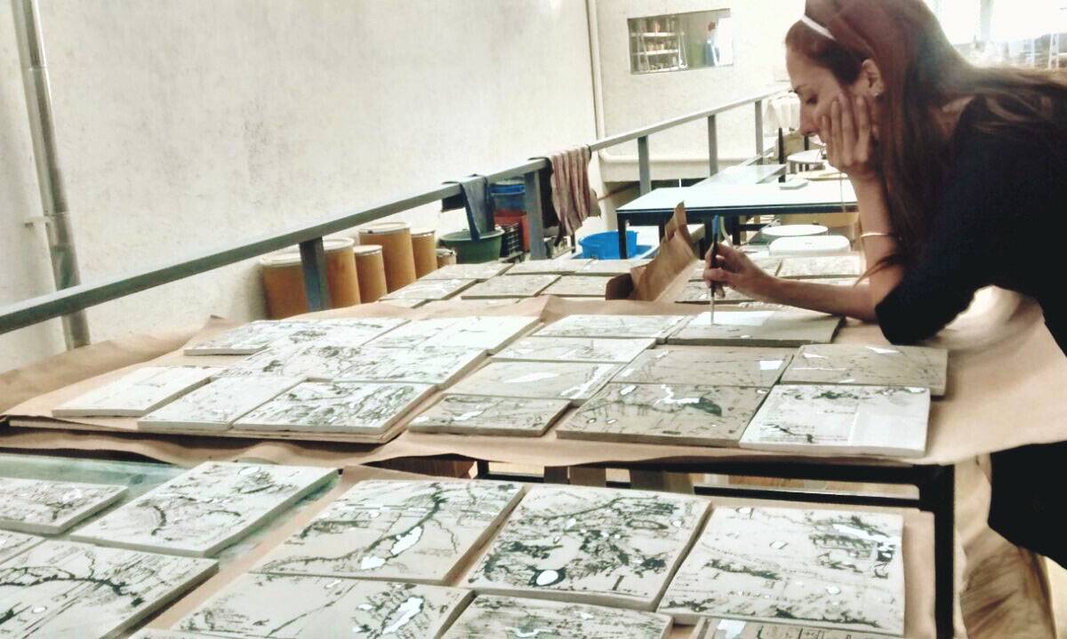 La muestra consta de 4 de 8 piezas de mapas que datan de la época ente 1400 y 1800, impresos en cerámica a mano con tres quemas e incrustaciones de oro, que podrán apreciarse desde la inauguración esta noche a las 20:00 horas, en Casa Alameda.