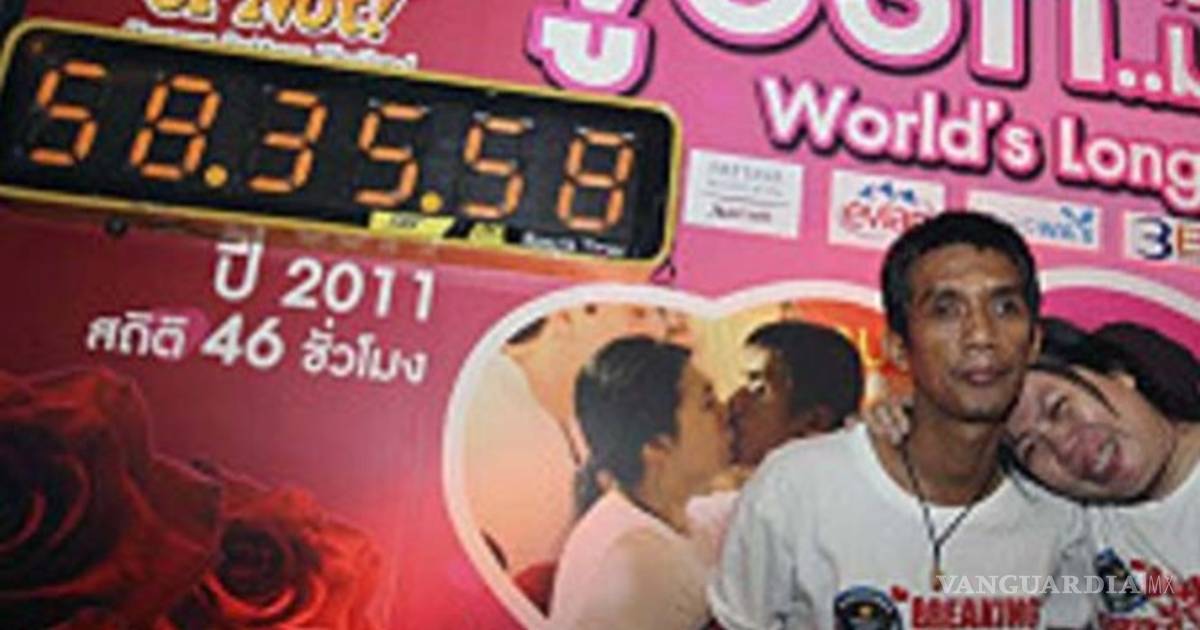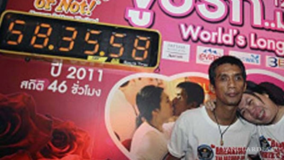 Ekkachai y Laksana Tiranarat, de Bangkok, pasaron 58 horas, 35 minutos y 58 segundos sellando sus labios en un “maratón de besos”, sí más de dos días con las bocas unidas, durante un festejo de San Valentín.
