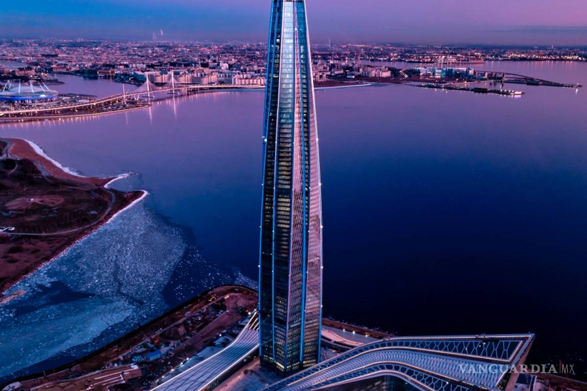 + La torre Lakhta Center de 462 metros de altura en San Petersburgo (Rusia) es la más alta de Europa y su estructura exterior consta de cinco alas que giran casi 90 grados, dando al edificio la forma dinámica de una llama ardiente, según la firma especializada en base de datos de construcciones Emporis.