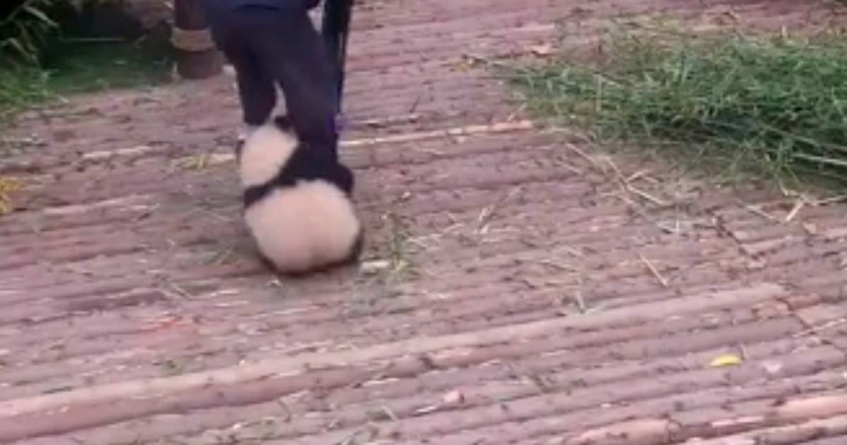 Un video se ha hecho viral por la ternura de su protagonista, un panda bebé de un zoológico chino que busca reiteradamente abrazar al trabajador que prepara bambúes que serán su comida.