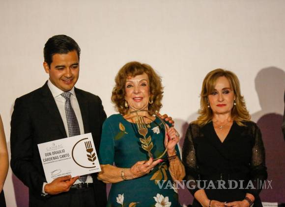 El premio lo recibió su esposa Lilia Amparo Cantú de Cárdenas, acompañada por sus hijos Braulio y Juan Ramón Cárdenas Cantú, de manos de Eder López y Azucena Ramos. Después, posó frente a las cámaras orgullosa del legado que dejó su esposo en la ciudad que quiso tanto.