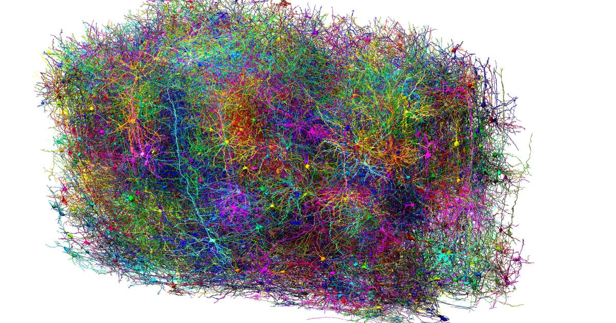 Cuarenta y seis años después, un equipo de más de 100 científicos ha logrado ese imposible, registrando la actividad celular y cartografiando la estructura en un milímetro cúbico del cerebro de un ratón, menos del uno por ciento de su volumen total. Para lograr esta hazaña, acumularon 1,6 petabytes de datos, el equivalente a 22 años de video de alta definición sin interrupción.