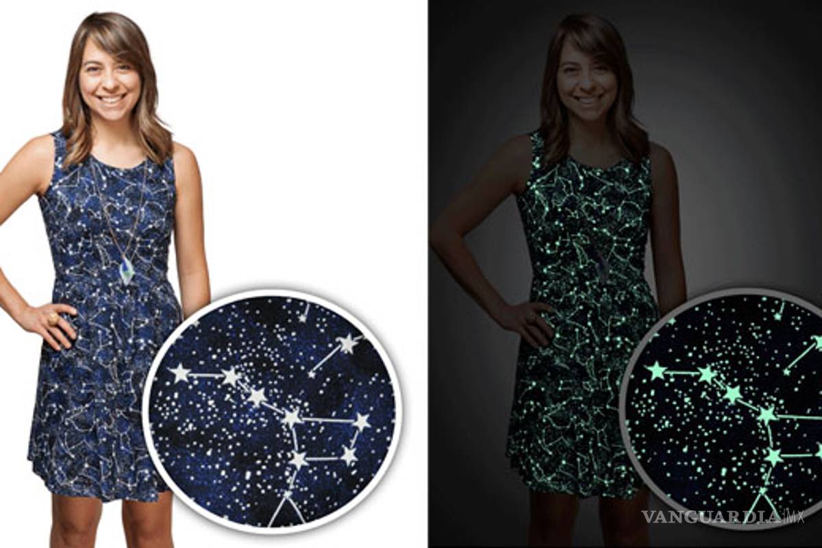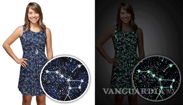 Hoy la moda demuestra no estar peleada con la ciencia, y la inteligencia femenina siempre puede ir acompañada de un outfit super cool, como este vestido azul marino cubierto de estrellas y constelaciones que brillan en la obscuridad que se ha convertido en la sensación en Pinterest.
