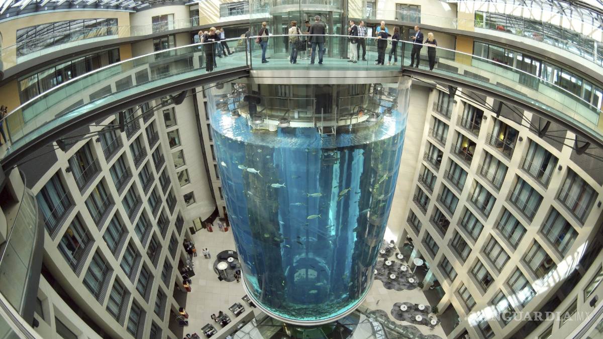 Al acuario AquaDom en Berlín, Alemania, le sobran cualidades para considerarlo como una atracción única y espectacular: tiene forma de cilindro y la altura de un edificio de ocho plantas; contiene un ascensor, se sitúa en el vestíbulo de un lujoso hotel y ofrece una mágica y colorida visión de la vida marina.
