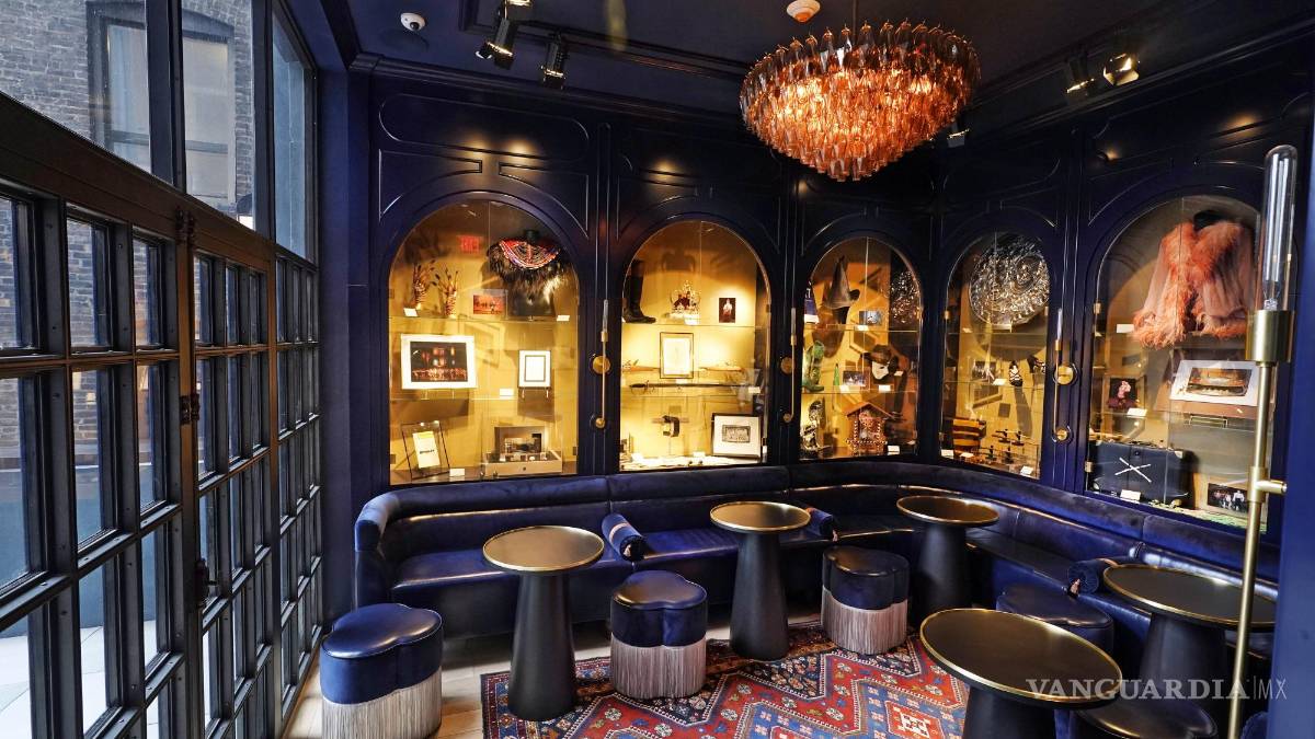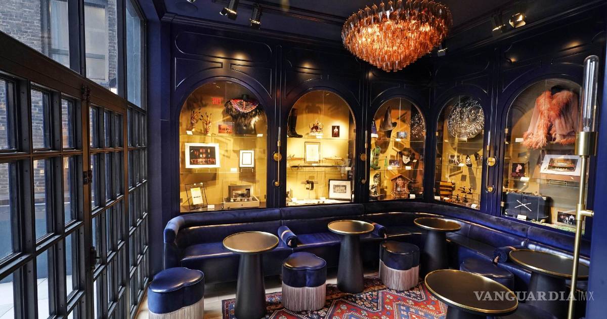 Hay además una biblioteca privada con acabados en azul y bombillos de marquesinas en la que los visitantes pueden encontrar réplicas de armas y una corona de “Hamilton”, la maqueta original del set de “Company”, botas rojas de “Kinky Boots” y una chaqueta rosada de “Cabaret”. “Te sientes como en el vestidor de un teatro”, dijo Rockwell.