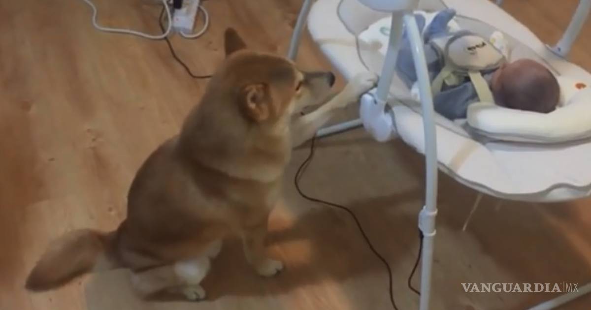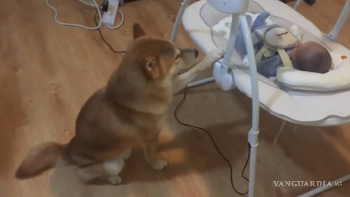 El conmovedor momento del adorable perro meciendo con su pata al bebé, ya casi se convierte en video viral.