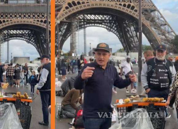 ¿Con todo? Migrante vende elotes asados frente a la torre Eiffel (video)
