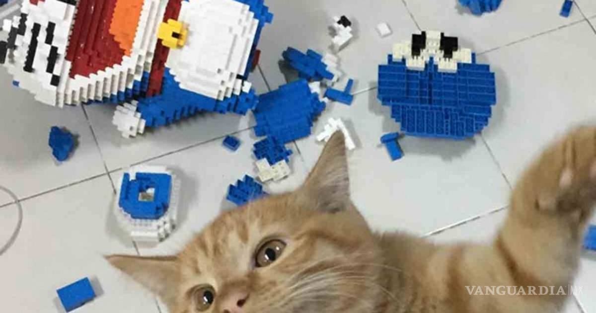 La figura de más de 2 mil piezas del personaje de Doraemon valuada en 150 dólares se esfumó en segundos cuando su gato saltó sobre ella.