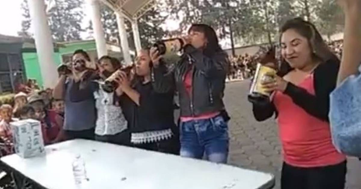 El concurso consistía en que la mamá que se tomara más rápido la caguama se gana una licuadora.