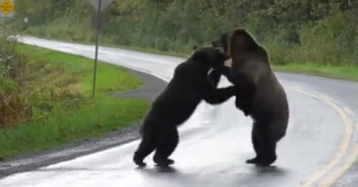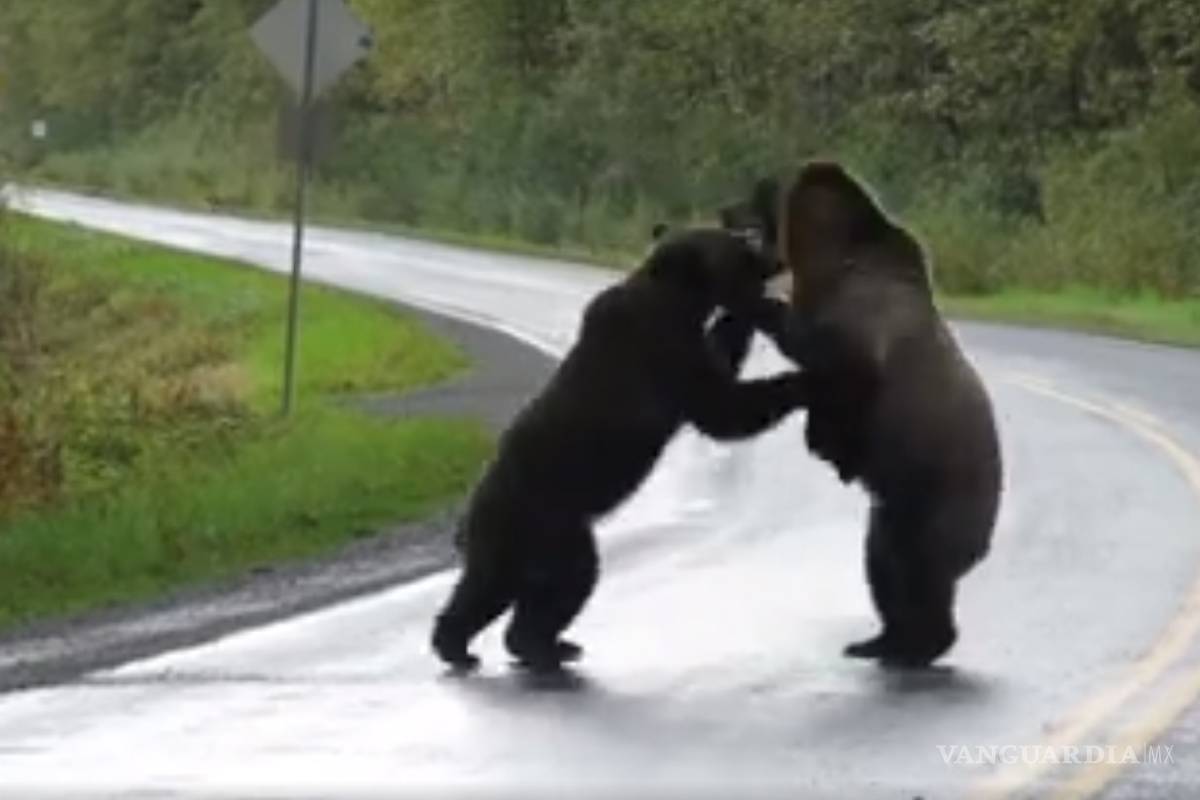 Graban salvaje pelea de osos en una carretera de Canadá