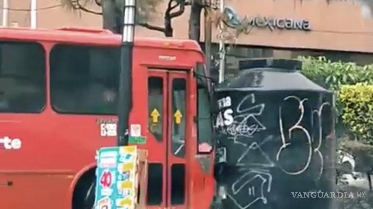 El “Rotoplas” chocó contra una unidad del transporte público, afortunadamente no se registraron personas lesionadas, más que uno que otro video viral.