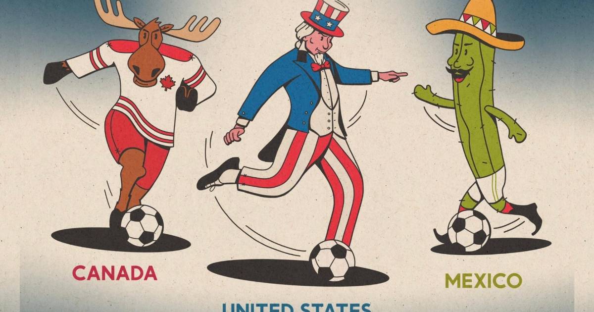 Pues en dichas ilustraciones se puede apreciar un alce representando a Canadá; el conocido “Tío Sam” de propaganda militar por parte de Estados Unidos; mientras que México es representado por un cactus con un sombrero, bigote y botas, los tres personajes patean balones de futbol.