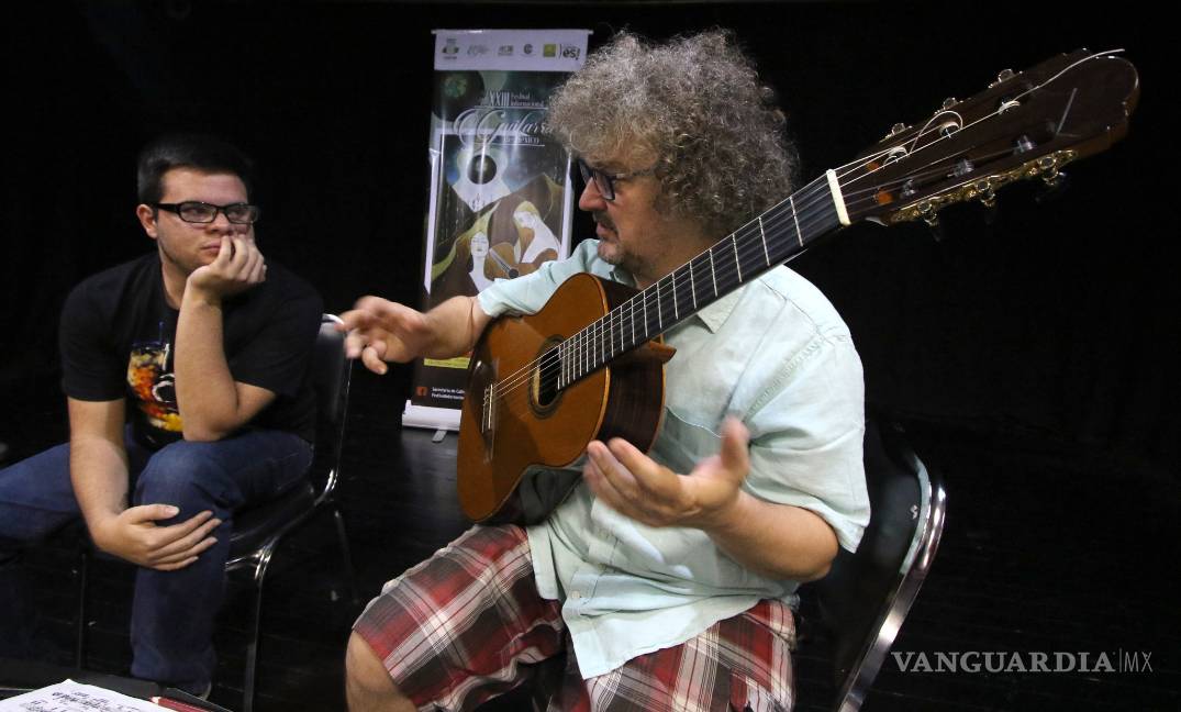 El maestro, quien ofrece cursos en línea muy populares y completos, compartió con los talentos saltillenses su experiencia y uno a uno fue subiéndolos al escenario del teatro de cámara del recinto, donde corrigió errores en la técnica y les dio recomendaciones sobre interpretación.